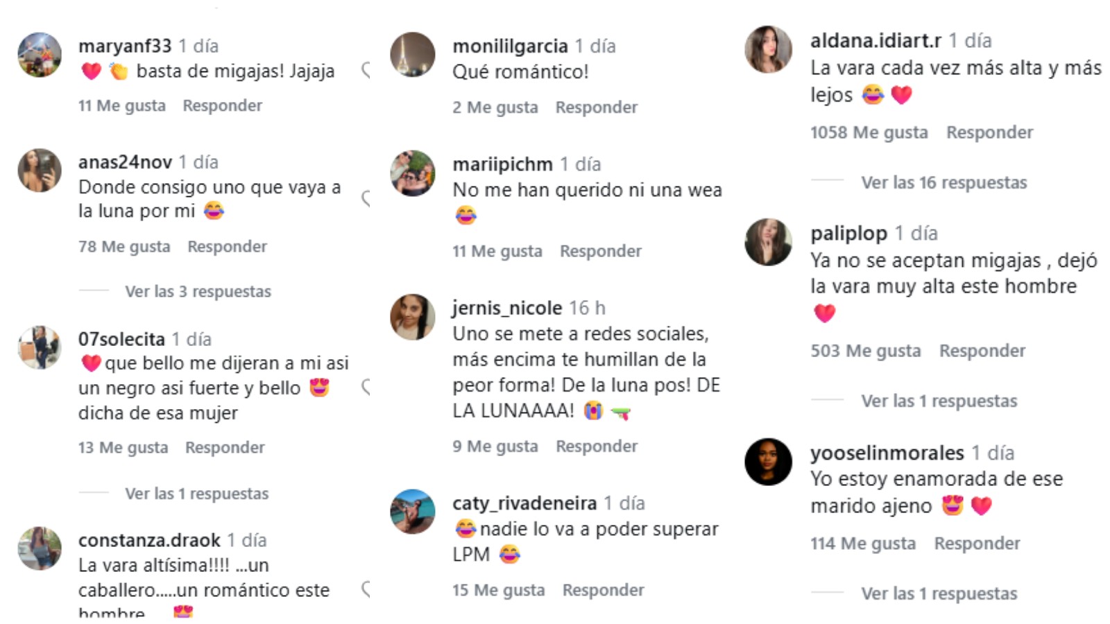 "No me han querido nada", "¿Dónde consigo uno que vaya a la Luna por mí?", "Dejó la vara muy alta este hombre", fueron algunos de los comentarios con la romántica situación.
