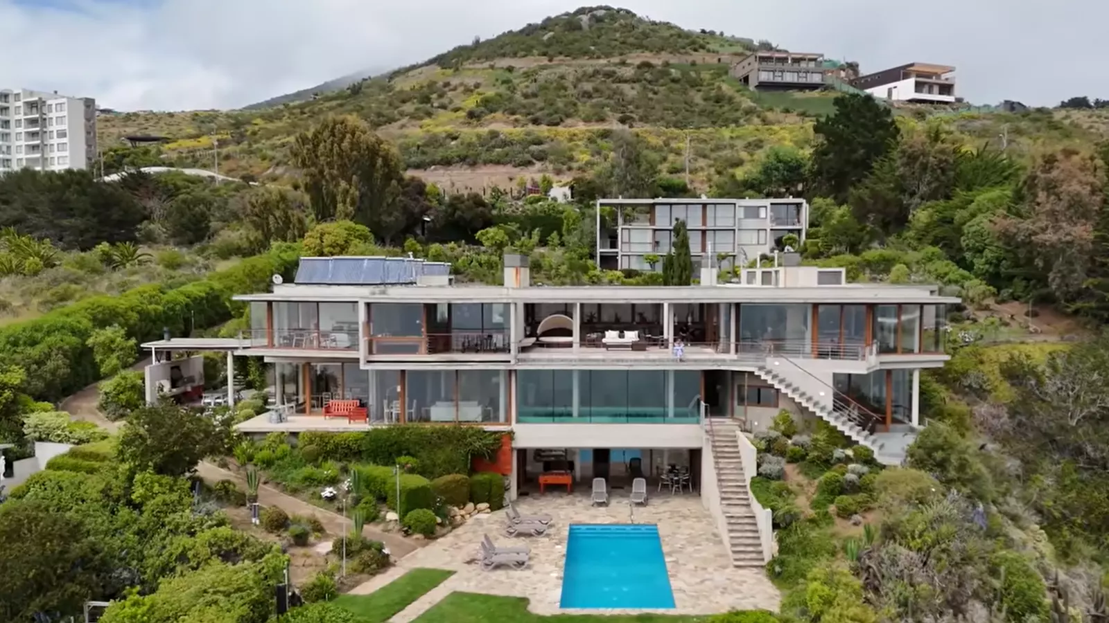 El inmueble diseñado por el reconocido arquitecto y Premio Nacional de Arquitectura, Teodoro Fernández, está ubicado en un terreno con 10.000 m² en Zapallar, en que abunda el paisaje amplio con senderos y una vista al océano Pacífico.
