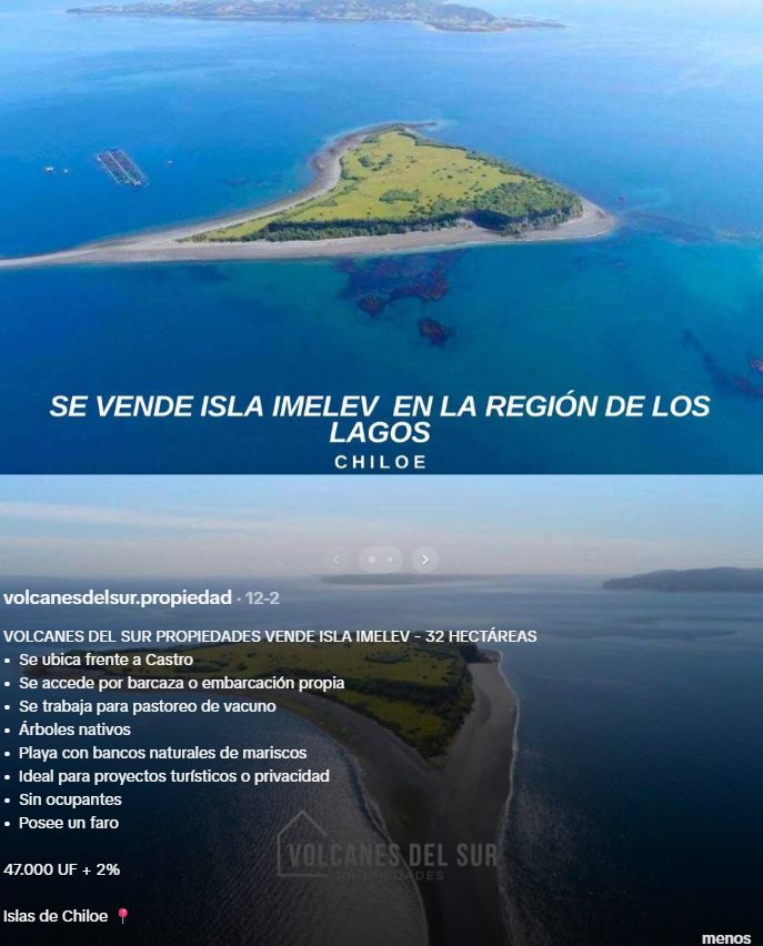 Se trata de Imelev, una isla de 32 hectáreas ubicada en la región de Los Lagos, a sólo 30 kilómetros de la ciudad de Castro y muy cerca de Quehui, en Chiloé.