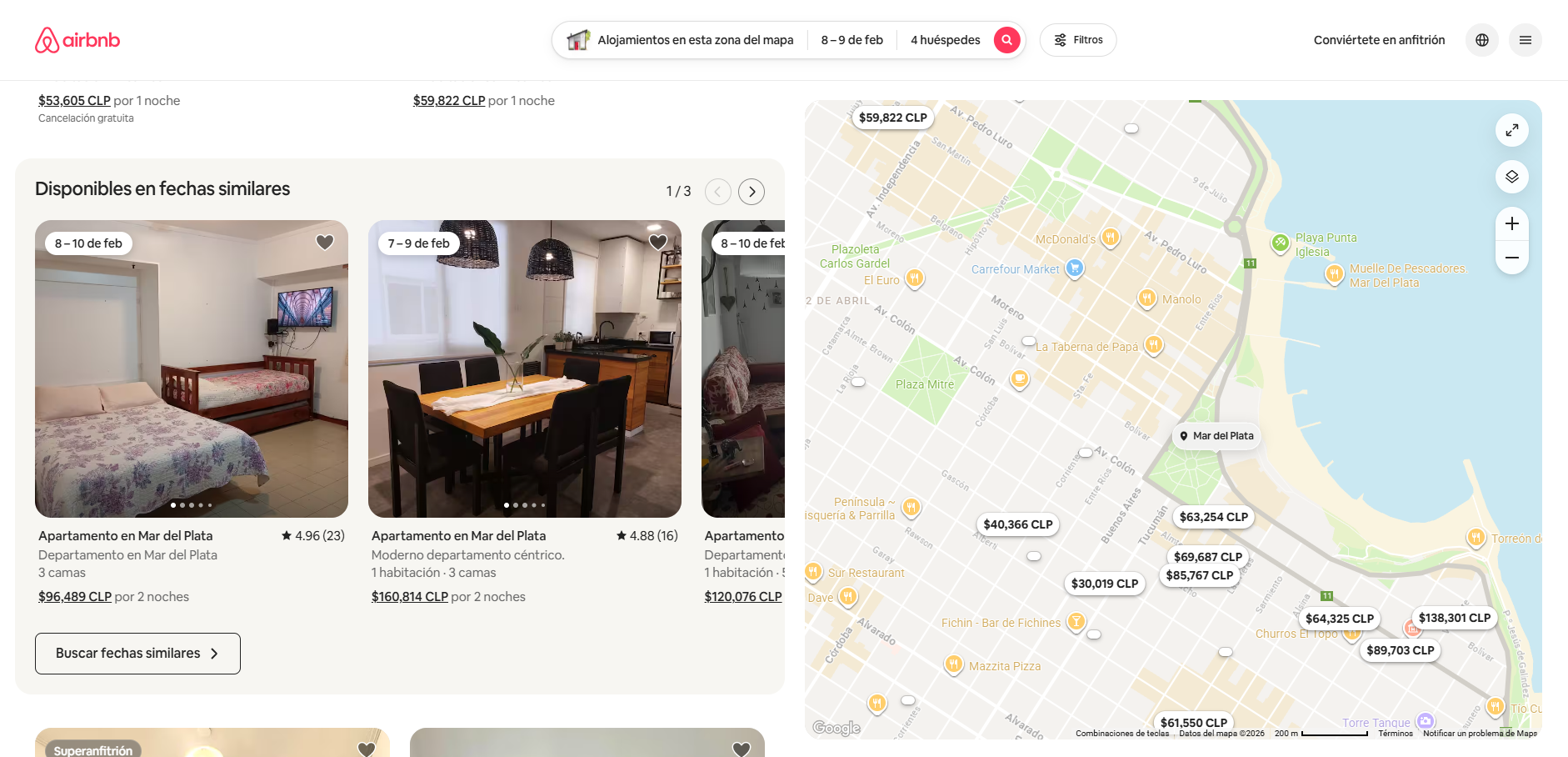 Los precios en Mar del Plata pueden variar entre los $720.000 y los $990.000 mil pesos chilenos, dependiendo de la ubicación y los servicios que puedan entregar. En Reñaca un lugar con las mismas características costaría entre $640.000 y $1.000.000 de pesos chilenos.
