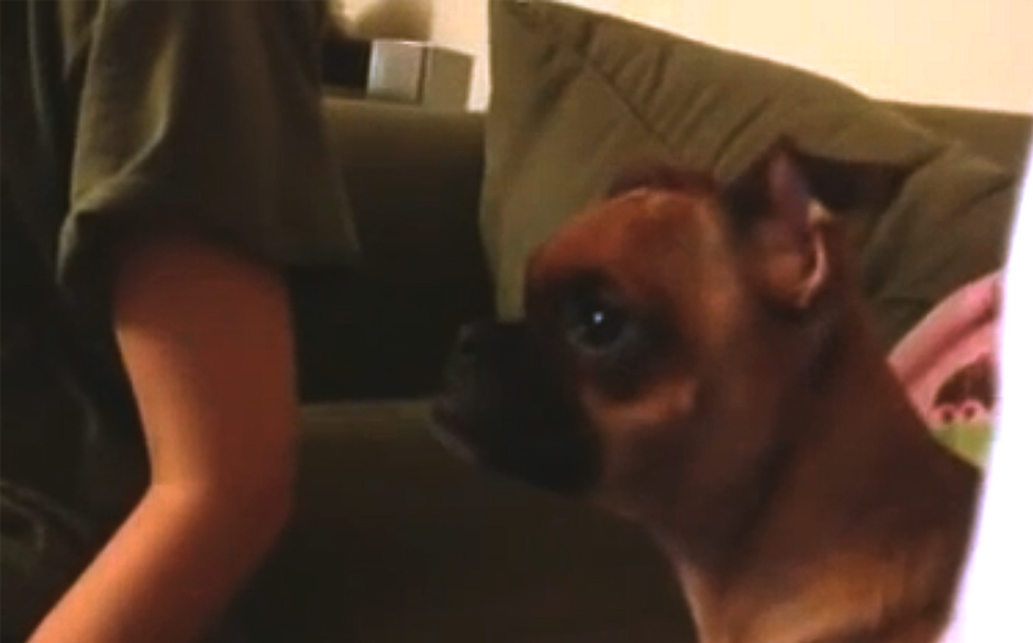 En las imágenes podemos ver al can junto a su dueña viendo la "conmovedora escena", en instantes y con el transcurso de la secuencia, el perro comienza a estremecerse ante tan tamaña tristeza.