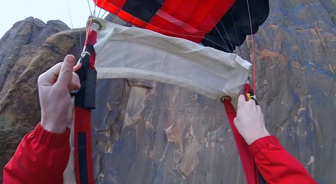El paracaidista estaba realizando un salto desde el acantilado conocido como "Wall Street" en Utah, Estados Unidos, cuando inesperadamente realizó una errónea maniobra, la que desencadenó una espeluznante caída.