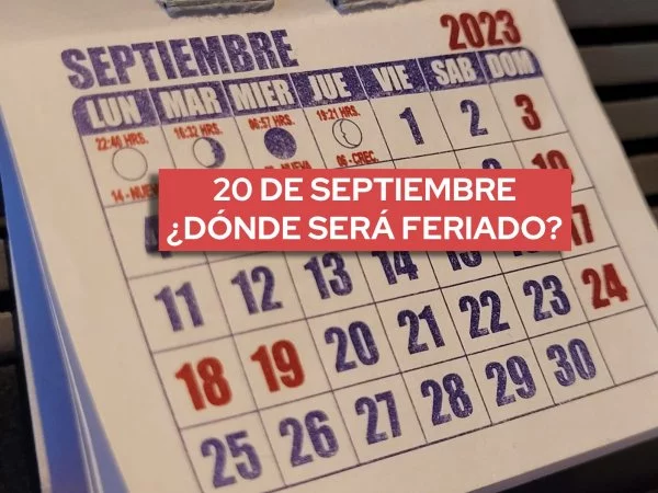 Lunes 11 de septiembre de 2023 ¿Por qué y dónde es feriado el 20 de septiembre? Una región del país podrá disfrutar de un día más de Fiestas Patrias la próxima semana. ¿Dónde tendrán este feriado? Te lo contamos.